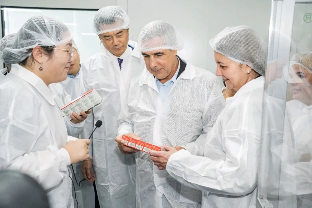 在湖北中古生物制药有限公司的现代化生产车间,马丁内斯副总理驻足观看多廿烷醇片的生产线运行情况,对企业严格的质量管控体系表示赞赏。该公司作为中古生物医药合作示范企业,深耕古巴及拉美市场近十年,其主打产品多廿烷醇片是古巴国宝级产品、从甘蔗提取的天然降脂药,被誉为“血管清道夫”,在调节血脂方面具有显著功效和安全性,已被国内多个权威血脂指南和专家共识认可。